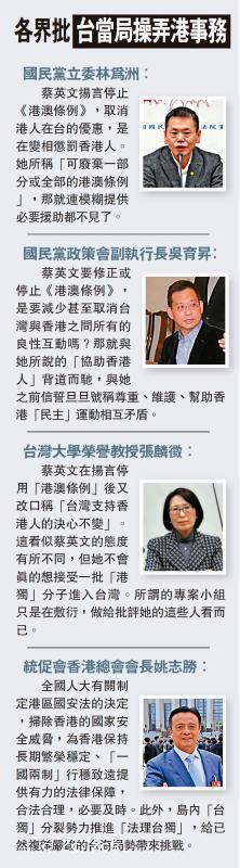 各界批 台當局操弄港事務