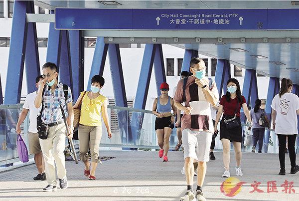 ■ 當下本港疫情勢頭凶險,仍有行人半脫口罩。 香港文匯報記者 攝 8小時108宗確診83宗本地個案 醫療體系瀕崩潰...