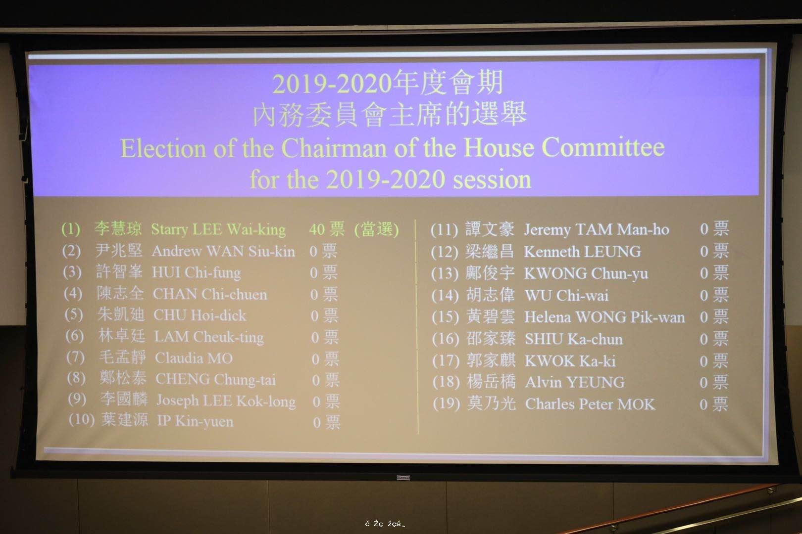 香港立法會內務委員會今日(18日)舉行特別會議,由財務委員會主席陳健波主持內會主席選舉程序,民建聯立法會議員李慧琼以40票當選新任內會主席。建制派「班長」廖長江今日於會後見記者時表示,困擾立法會多月的問...