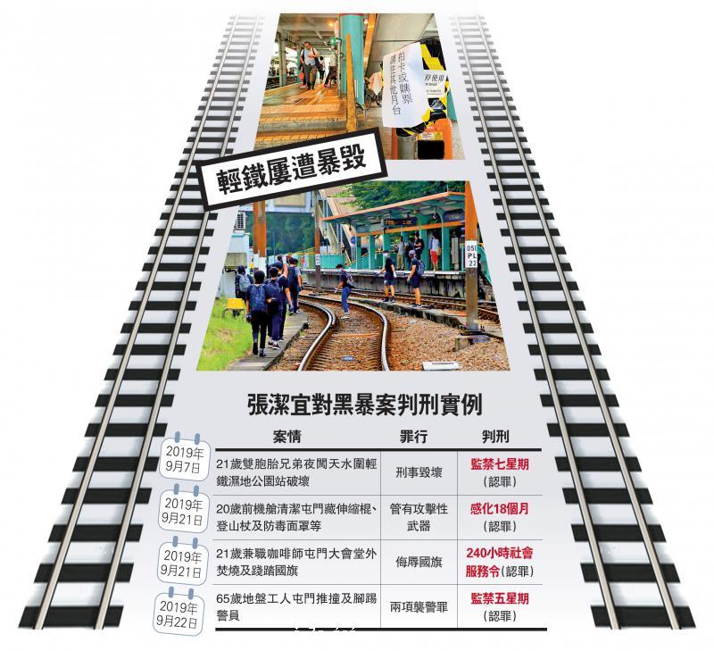 2019年 9月7日 21歲雙胞胎兄弟夜闖天水圍輕鐵濕地公園站破壞 刑事毀壞 監禁七星期(認罪) 2019年 9月21日 20歲前機艙清潔屯門藏伸縮棍、登山杖及防毒面罩等 管有攻擊性武器 感化18個月(認罪)...