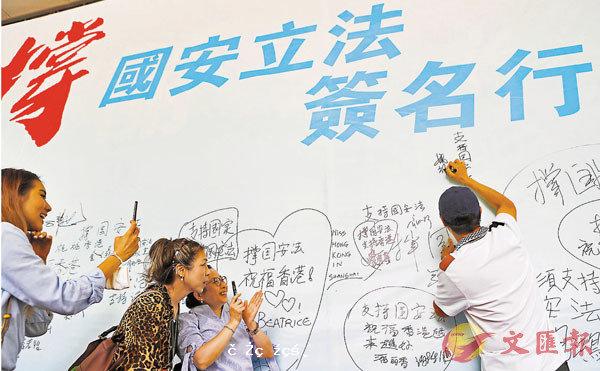 ■民調顯示74%市民認為有責任維護國安。圖為日前居滬港人簽名撐立法。資料圖片...