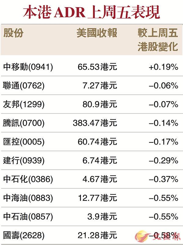 ADR普跌 恒指料低開