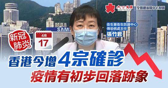 香港衞生署衞生防護中心傳染病處主任張竹君今日(17日)下午在簡報會上表示,本港今日新增4宗新冠病毒確診個案,累計確診個案增至1021宗,為連續6日新增確診個案維持單位數字。 ...