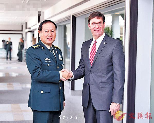 ■國務委員兼國防部長魏鳳和18日會見美國國防部長埃斯珀。 網上圖片 據中新網報道,據國防部新聞局官方微博消息,18日上午,中國國防部新聞發言人吳謙在曼谷舉行媒體吹風會,介紹國務委員兼國防部長魏鳳和與美國國...