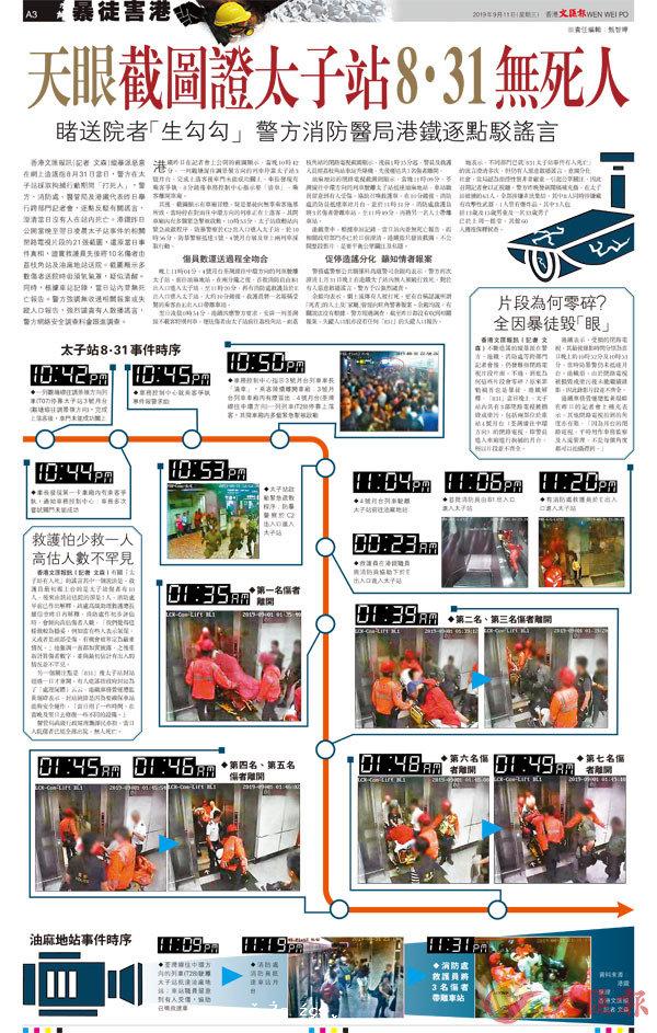 睹送院者「生勾勾」 警方消防醫局港鐵逐點駁謠言 縱暴派惡意在網上造謠指8月31日當日,警方在太子站採取拘捕行動期間「打死人」,警方、消防處、醫管局及港鐵代表昨日舉行跨部門記者會,逐點反駁有關謠言,澄清當日...