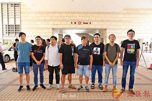 ■「佔西」案其中8名被告(左起)鄭沛倫、周嘉發、盧德昌、林朗彥、周樹榮、陳文威、葉志衍及吳文遠。...