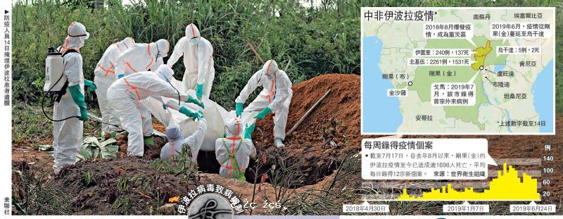 據路透社、美聯社、BBC及CNN報道:非洲國家剛果(金)的伊波拉疫情持續爆發,錄得接近1700人死亡,世界衛生組織(WHO)17日正式宣布將當地疫情列為國際關注緊急公共衛生事件(PHEIC)。此次疫情呈現跨境傳染威脅,...