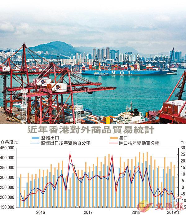 ■昨天公佈的本港6月份整體出口貨值按年大跌9%,為連續8個月錄得下跌;進口也錄得7.5%的跌幅,連跌七個月。 資料圖片...