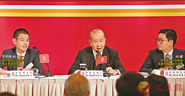 ■80歲的李國寶(中)將於7月退任行政總裁,交棒至兩個兒子。 資料圖片打拚半世紀 7月退任CEO 兩子接班不少華資富豪陸續退下火線,將生意王國交棒予下一代,本港老牌華資銀行東亞(0023)創業百周年慶後,行政總裁李國...