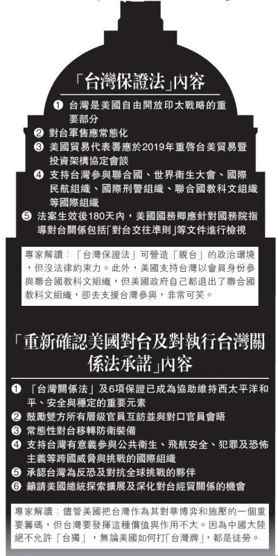 美國聯邦眾議院7日通過「2019年台灣保證法案」和「重新確認美國對台灣及對執行台灣關係法之承諾」決議案,「台灣保證法案」要求對台軍售常態化,以及重啟台美貿易協議會談。中國外交部發言人耿爽8日表示,中方對此堅...