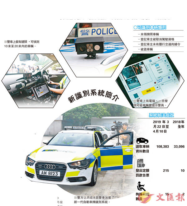 掃描逾10萬座駕拘15人 舊系統全年僅發10張定額罰款警方早前在8部警車上安裝新一代自動車牌識別系統,方便警員巡邏期間能隨時透過電腦識別路上可疑車輛,從而將司機截停調查。新系統雖然運作不足3星期,但已協助警方掃...