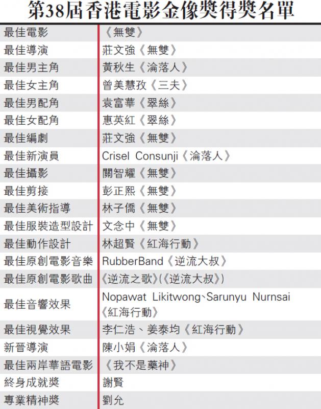 第38屆香港電影金像獎得獎名單...