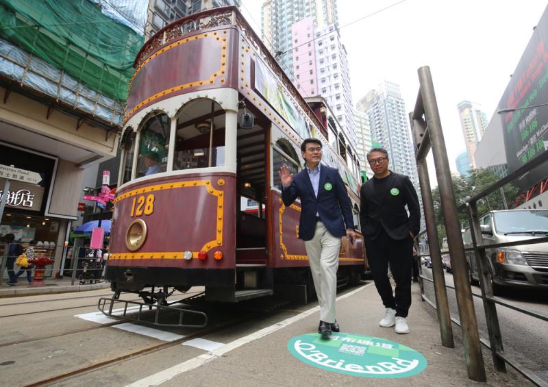 盧押道與柯布連道電車站地面,近期出現了綠色貼紙,它猶如一個笑臉,而且可幫助乘客辨別上車的方向,設計師梅詩華希望大家看到這個笑臉時,能喚起更多笑聲故事,讓大家「#笑多dd」。而在電車必經的莊士敦道電車軌上,...