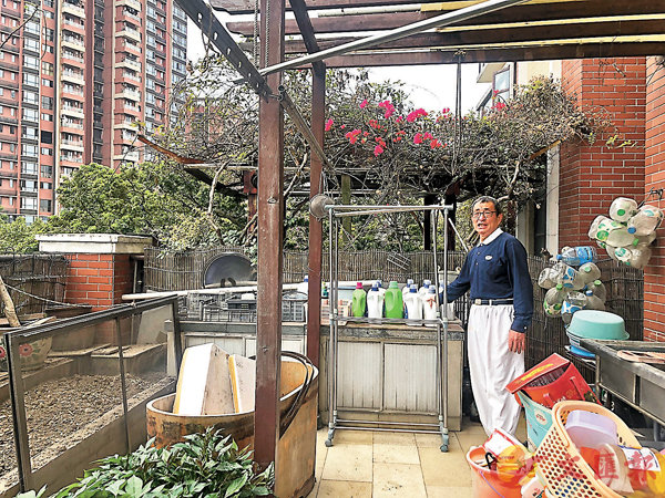 ■台胞嵇大昕在社區推廣垃圾分類,實行「零污排」生活,將台灣經驗帶到大陸。圖為其家中裝滿了廚餘製成的酵素。 香港文匯報記者胡若璋 攝給孩子講「可回收」普及課 「零污排」故事登央視68歲東莞台胞嵇大...