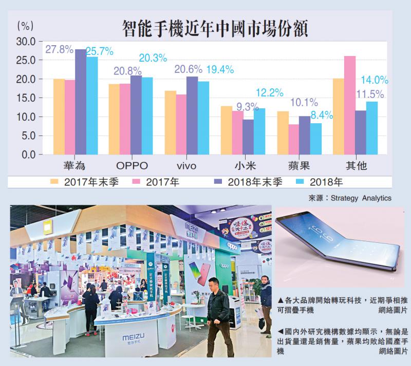 隨着國產手機性價比不斷提升,在內地的市佔率亦愈來愈高。國內外研究機構的數據均顯示,無論是出貨量還是銷售量,蘋果均敗給國產手機。賽諾中國手機市場最新發布數據顯示,去年內地五大手機銷量排名中,國產手機佔前...