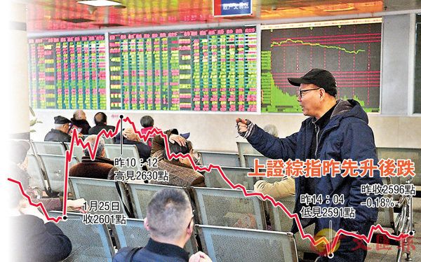 ■A股三大指數昨均現先高後低走勢。 中新社觀望劉鶴赴美談判結果 經濟前景添憂中證監主席易會滿昨履新,惟A股三大股指先升後回,上證收市倒跌約5點,再失2,600點關,收報2,596.98點,兩市成交額合計更縮至2,998億元(...