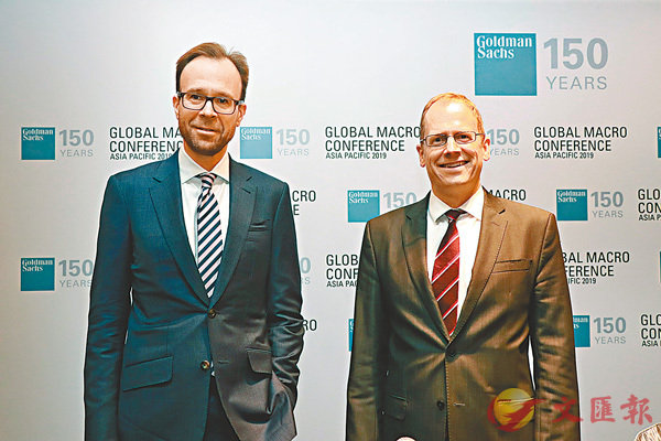 ■迪安竹(右)預料,香港經濟今年增長將放緩至2.5%左右。左為哈哲思。 彭子文 攝高盛亞太區首席經濟分析師迪安竹昨於記者會上表示,預計2019年內地GDP實際增長約6.2%,相較於2018年的6.6%有所減弱,內地將推出更多經濟...