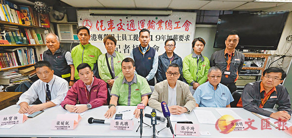 ■五個專營巴士工會要求今年為巴士司機加薪8%。 香港文匯報記者梁祖彝 攝工聯:月薪未達同業中位數 缺人怕炒壓力大農曆新年將至,打工仔最關心加薪情況。工聯會屬會「汽車交通運輸總工會」屬下九龍巴士分會、新世界巴...