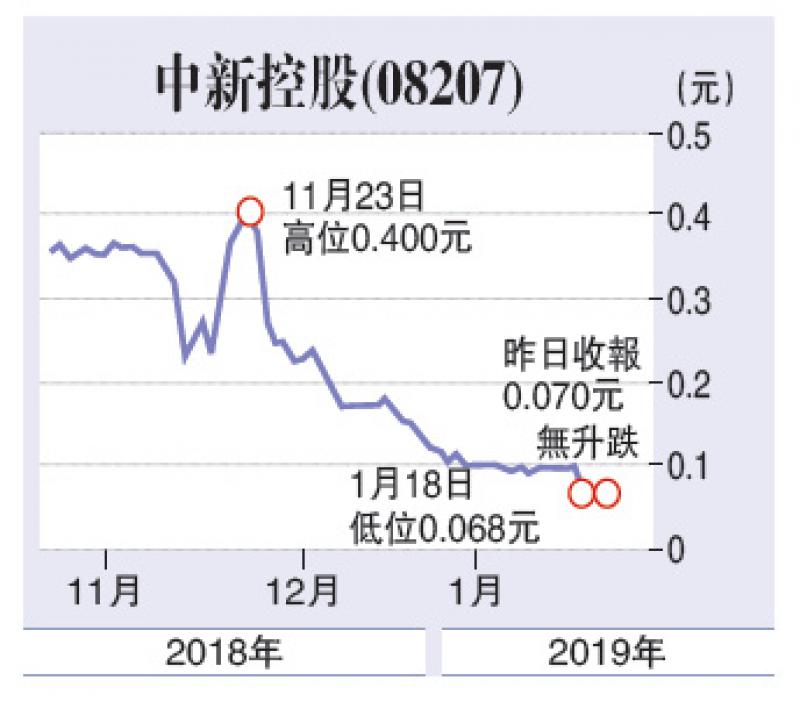 雖然恒生指數從低位反彈逾二千點,但近日有不少股仔失驚無神急瀉,市場傳聞與內地及香港兩地證券行收緊孖展有關。而中新控股(08207)很可能就是受害者之一,因其股價在上周五(18日)突然急挫逾四成八而位列「仙班」...