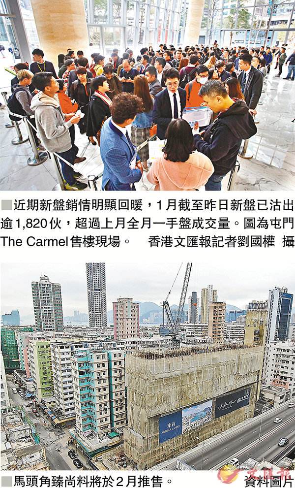 本月一手成交料逾2000宗 3個月最旺市場憧憬中美貿易戰有望紓緩,加上人行放水,恒指輾轉上揚,發展商低開令1月份新盤銷情明顯回暖,本月截至昨日新盤沽出逾1,820伙,已超過上月全月一手盤成交量。業界估計,1月份新盤...