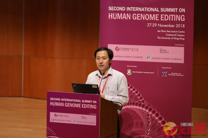 28日,賀建奎現身正在香港舉行的第二屆國際人類基因編輯峰會,參與主題為「人類胚胎基因編輯」的演講和討論。(全媒體記者李湃豐攝)28日,賀建奎現身正在香港舉行的第二屆國際人類基因編輯峰會,參與主題為「人類胚胎...