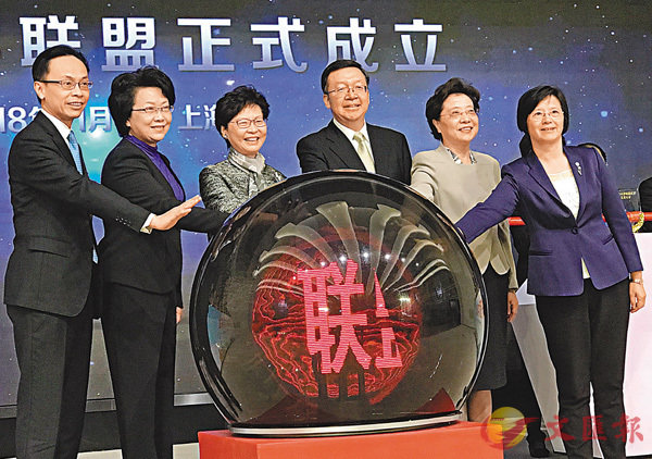 ■滬港共16所高校結成的「滬港大學聯盟」,昨日在復旦大學舉行成立儀式。香港文匯報記者夏微 攝林鄭:可深化科技成果轉化 教研學生交流合作增由上海和香港各8所大學發起的「滬港大學聯盟」,昨日在復旦大學舉行成立儀...