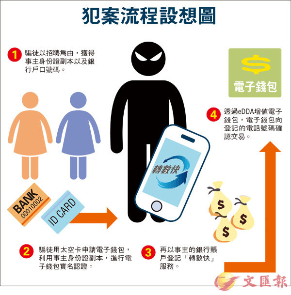 騙徒扮招聘呃證件資料 冒登電子錢包轉走銀行戶口18萬金管局上月推出「轉數快」,並提供電子直接扣賬授權「eDDA」的電子錢包增值服務,令電子錢包獲付款人授權可在戶口中直接扣賬。然而,金管局昨日披露逾十個銀行賬號...