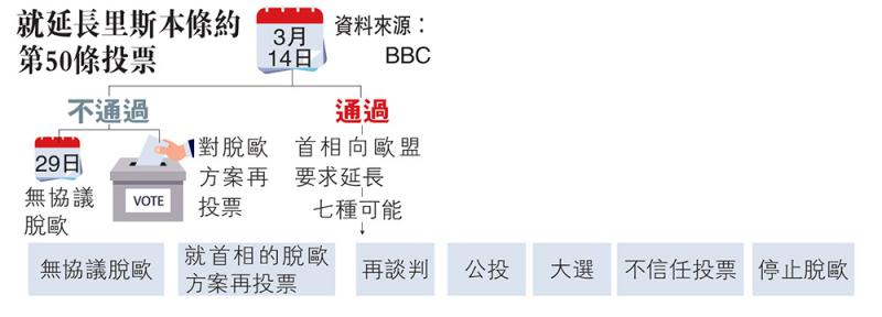 英國脫歐亂局持續,英國下議院13日否決了無協議脫歐,14日將投票決定是否延期脫歐。歐盟警告,英國脫歐只能在有協議和無協議兩者之間二選一,這也意味着即使延期,若無法達成協議仍可能「硬脫歐」。消息指,首相文...