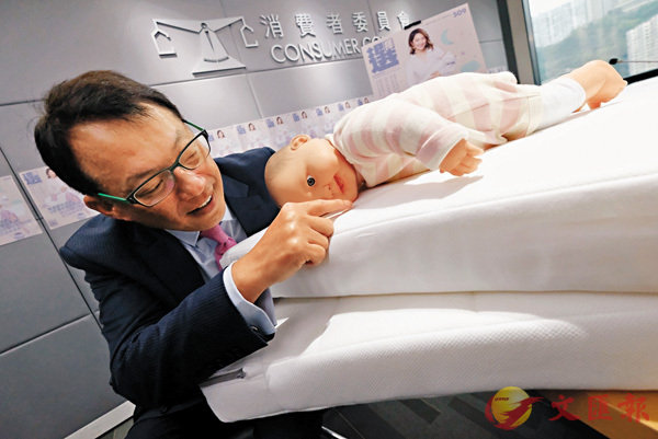 ■消委會披露,4款嬰兒床褥不符歐洲安全標準。 香港文匯報記者梁祖彝 攝3款不夠硬俯臥恐窒息 1款床隙大隨時卡頭不少家長迎接新生命都選用貴價嬰兒寢具,但最新一期消委會《選擇》月刊披露,4款嬰兒床褥不符歐洲安全標...