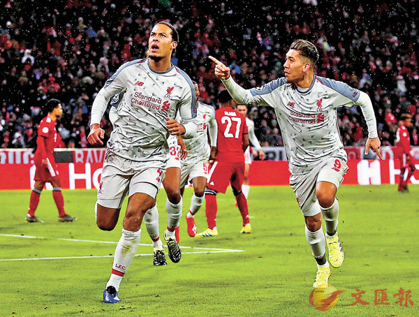 ■雲迪積克(左)貢獻一入球及一助攻,帶領利物浦晉級,不愧是當今最貴後衛。 路透社英超三雄踢走德甲隊過關 10年再佔歐聯8強4席首回合主場只能與拜仁慕尼黑互交白卷,本港時間昨天凌晨來到次回合,利物浦...