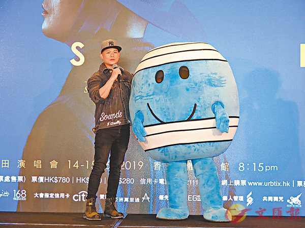 ■側田見到兒時鍾愛的的卡通人物,驚喜萬分。側田《My Beautiful Curse》演唱會將於6月14日及15日在紅館舉行,記者會上,有側田兒時鍾愛的卡通人物Mr Bump亮相,令他驚喜萬分。側田已是第8度於紅館開騷,他坦言希望能...