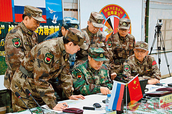 ■中俄參演官兵將在未來幾天共同進行聯合戰役演習。圖為中方導演部進行作戰籌劃。 中新社東方-2018演習層級提高 顯雙方政治互信軍事合作新高綜合新華社及中新社報道,中國軍隊參加的「東方-2018」戰略演習,當地時間...