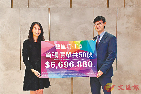 ■韓家輝(右)稱,藝里坊.1號訂價屬於貼市價。新盤盡吸購買力,9月新盤混戰持續,恒地西營盤一年期樓花盤藝里坊.1號昨晚突擊開價,首批50伙平均呎價30,915元,扣除最高3%折扣,折實平均呎價 29,988元,230方呎開放式...