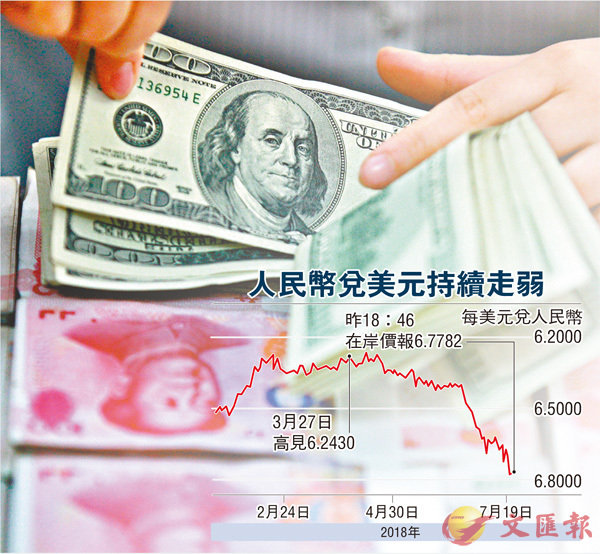 美加息預期推高美元 人幣料續受壓美國加息預期升溫下帶動美匯走高,加上全球貿易關係緊張對市場人氣產生負面影響,人民幣昨日顯著受壓,兌美元中間價連續第6天下跌,在岸價及離岸價齊創1年低位。離岸價(CNH)昨險守6....