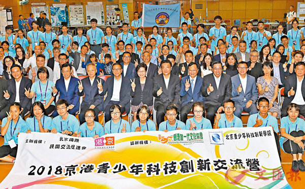 ■林鄭月娥、吉林、陳冬等為交流營主禮授旗。京港青少年創科營開營 林鄭月娥:人才交流最關鍵2018京港青少年科技創新交流營昨日舉行開營儀式,香港特區行政長官林鄭月娥、北京市政協主席吉林、中聯辦副主任陳冬出席主...