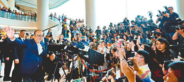 ■李嘉誠昨日退休,大批傳媒到場採訪,場面墟冚。 路透社香港首富、有「超人」之譽的李嘉誠,昨在長和系股東會後正式退休,將其掌舵68年、現市值逾萬億元的商業王國交予大兒子李澤鉅。李嘉誠表示,相信李澤鉅有能力帶...