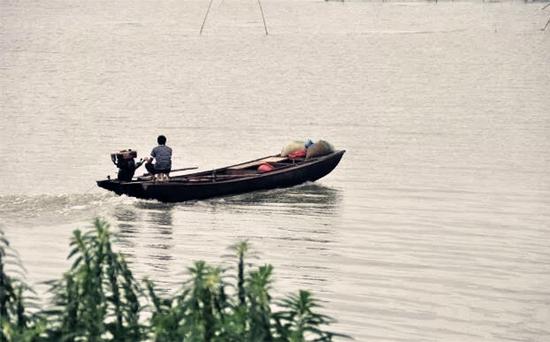 在煙波浩渺的瓦埠湖裏橫渡是我多年的心願