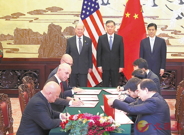■昨日,中國駐美使館回應稱,美一方面稱「要同中國發展夥伴關係」,一方面把中國放在對立面,是自相矛盾的,與雙方的努力亦背道而馳。圖為11月8日下午,中國國務院副總理汪洋在北京人民大會堂與美國商務部長羅斯共同...