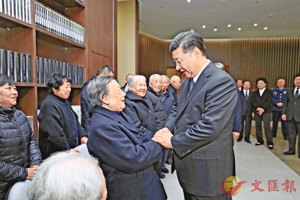 ■習近平親切會見南京大屠殺倖存者代表。 新華社南京大屠殺80周年 中國公祭死難者中共中央、全國人大常委會、國務院、全國政協、中央軍委昨日上午在江蘇省南京市隆重舉行南京大屠殺死難者國家公祭儀式。中共中央總書...
