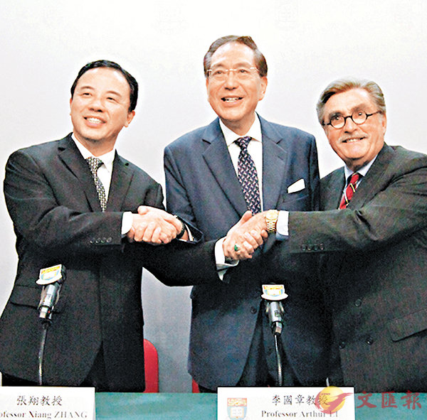 ■港大校委會通過張翔出任港大校長。左起:張翔、李國章、施文信。香港文匯報記者曾慶威 攝經過8個月的全球物色和遴選,香港大學昨日「敲定」由美國加州大學柏克萊分校頂尖納米材料科學家、「隱形衣」發明者張翔「接...