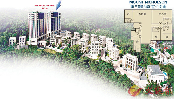 ■山頂MOUNT NICHOLSON第三期12C及12D獲同一組買家購入,呎價創新高。資料圖片MOUNT NICHOLSON相連戶11.6億售出超級豪宅越搶越貴,樓王寶座年內不斷「執位」。上周四截標的山頂MOUNT NICHOLSON第三期8伙分層單位,一...