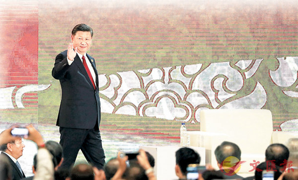 ■國家主席習近平昨日應邀出席在越南峴港舉行的APEC工商領導人峰會,並發表題為《抓住世界經濟轉型機遇 謀求亞太更大發展》的主旨演講。圖為習近平向台下揮手致意。 路透社出席APEC工商領導人峰會 呼籲支持多邊貿易體...