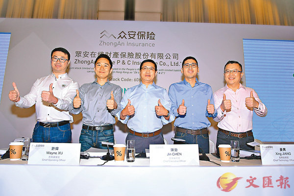 ■眾安保險今日掛牌,有認購的投資者穩獲一手。圖為早前舉辦新聞發佈會現場。 資料圖片分析:今掛牌如受壓 失守招股價可追入香港文匯報訊(記者 周紹基)凍資超過2,300億元的「三馬」概念股眾安保險(6060)今日掛牌...