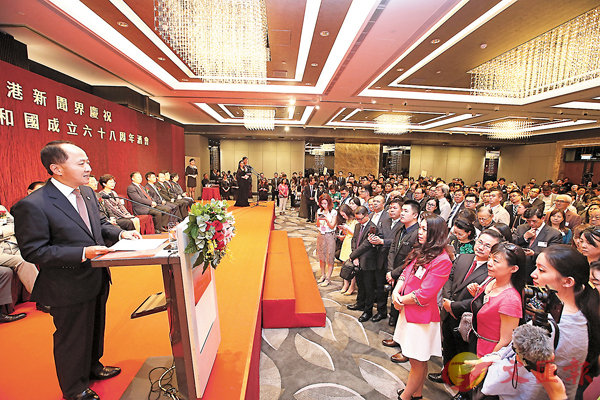 ■中聯辦主任王志民昨日出席「香港新聞界慶祝中華人民共和國成立68周年酒會」時致辭,就建設好香港家園提出要把握「三勢」,深受港各界認同。香港文匯報記者潘達文 攝各界贊同王志民「三勢」論 籲青年了解祖國目光放...