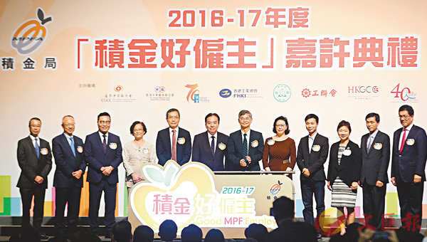 ■積金局舉辦第三屆「積金好僱主」嘉許禮,共有877間機構獲「積金好僱主」獎項,創歷年新高。 香港文匯報記者莫雪芝 攝92%得主提供自願供款 17%有畀僱員揀積金計劃香港文匯報訊(記者 何寶儀)積金局舉辦第三屆「積金...