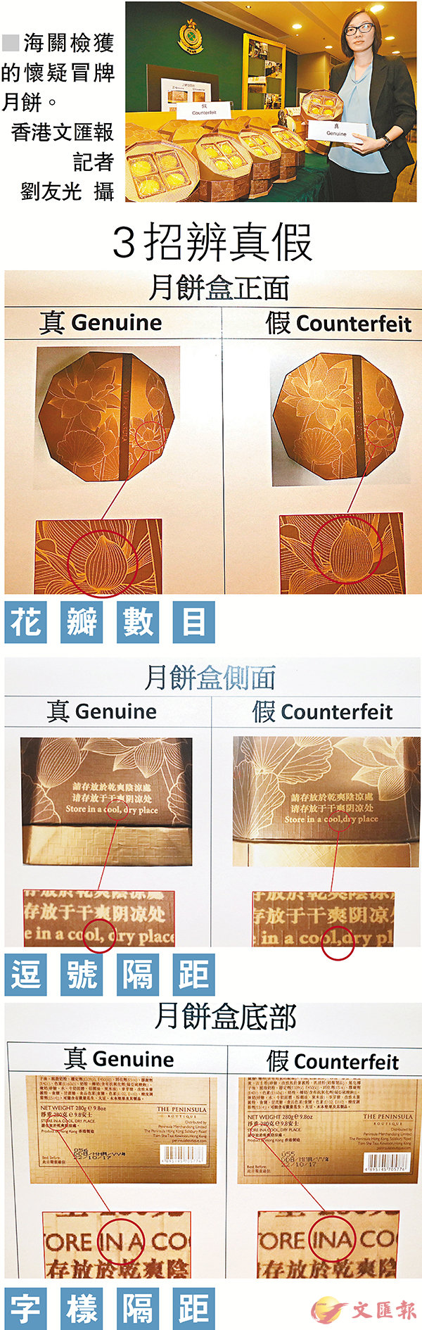 海關檢假半島月餅 高仿包裝差異微