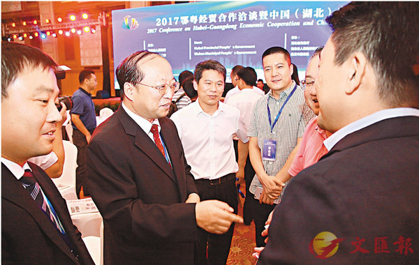 ■劉子清(左二)在推介會現場與企業代表交流推介中法武漢生態示範城。 香港文匯報記者俞鯤 攝8月15日至16日,中法元首級項目「中法武漢生態示範城」在港進行全球推廣。武漢市蔡甸區區委書記、中法生態城管委會主任劉...