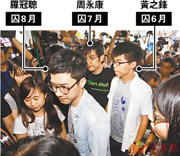 ■黃之鋒、 羅冠聰、周永康昨日被上訴庭裁定即時監禁。上訴庭判黃之鋒羅冠聰周永康囚6至8個月香港文匯報訊(記者杜法祖、葛婷 )前「學民思潮」召集人黃之鋒、學聯前常委羅冠聰及前秘書長周永康,3年前衝擊政府總部東...