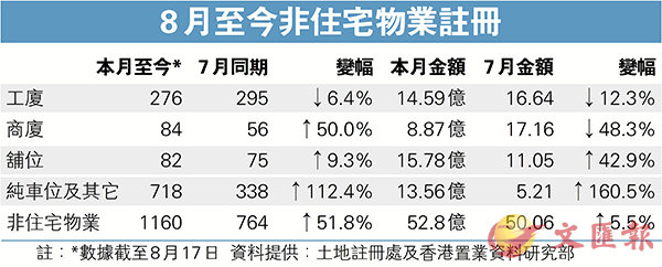 車位是磚頭買賣的一個環節,特點是入場費低又有穩定回報,正是高樓價下的投資出路。港置行政總裁李志成表示,因純車位拆售帶動下,純車位及其他類別8月至今錄718宗註冊,較7月同期的338宗激增約1.1倍,增幅凌厲;涉及...