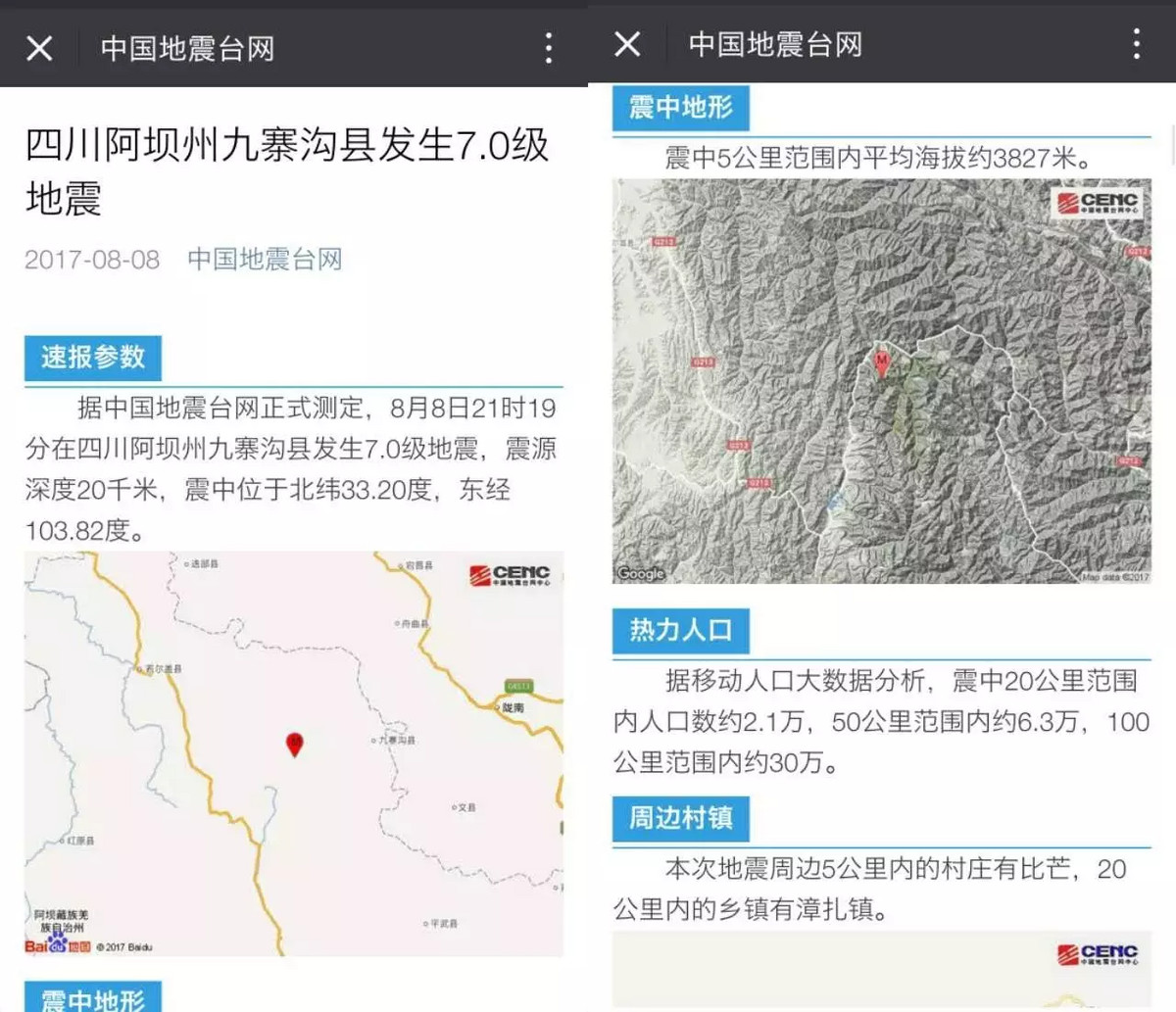 【文匯網訊】 四川九寨溝縣「8.8」地震抗震救災指揮部最新通報稱,截至11日12時,經初步核查,九寨溝地震7.0級已致20人死亡,431人受傷,九寨溝全縣17個鄉鎮120個村不同程度受災,受災10910戶,受災44129人。8月10日...
